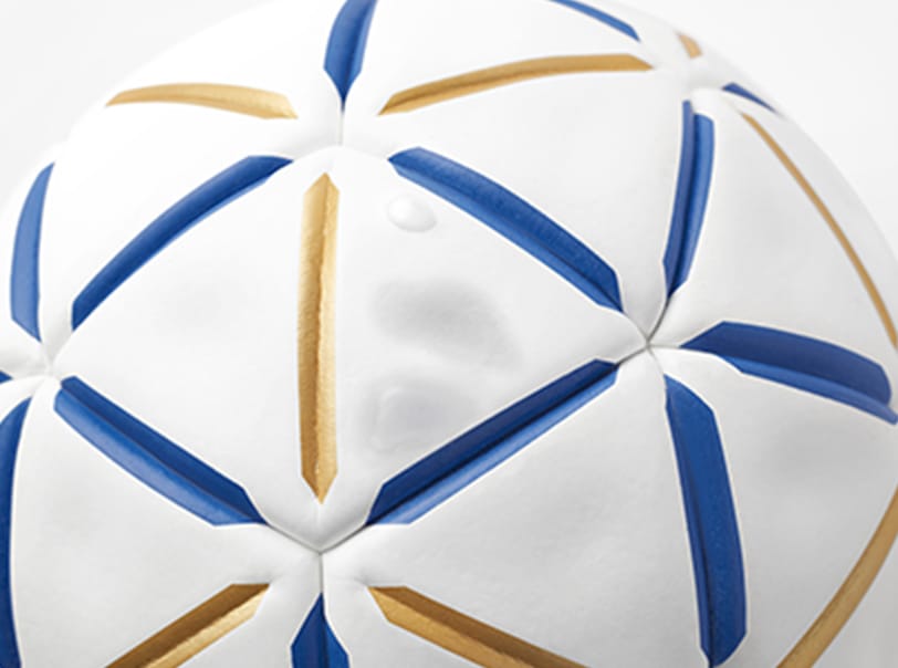 Evenly placing 60 triangle-shaped panels enables players to catch and hold the ball with more ease than a traditional ball. The dimple at the center of the panels and deep channels between the panels contribute to a better grip and more control.